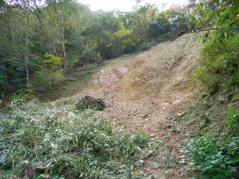 山肌が崩れ、歩道が 完全に崩落していた…。