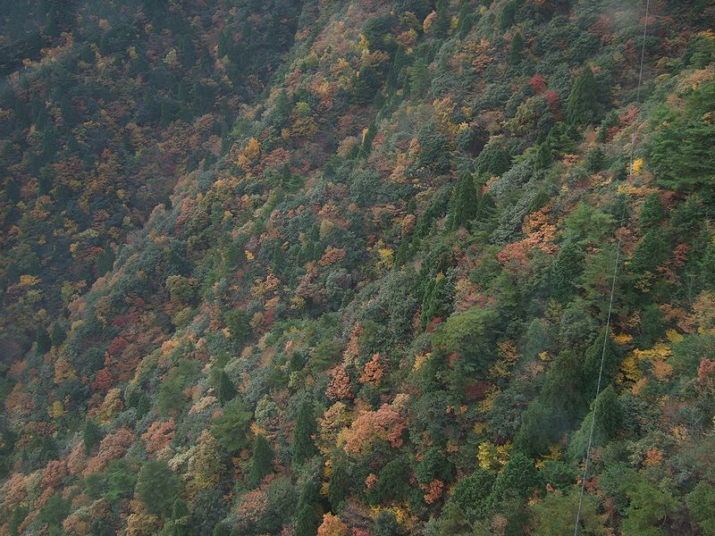 ロープウェイで降りる。 紅葉はまだら模様だった |