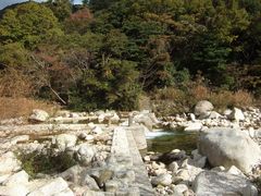 | 奥の方の飛び石。 かなり水量があって、少しでも増水すると、先ほどの迂回路の通行が必要になる |
