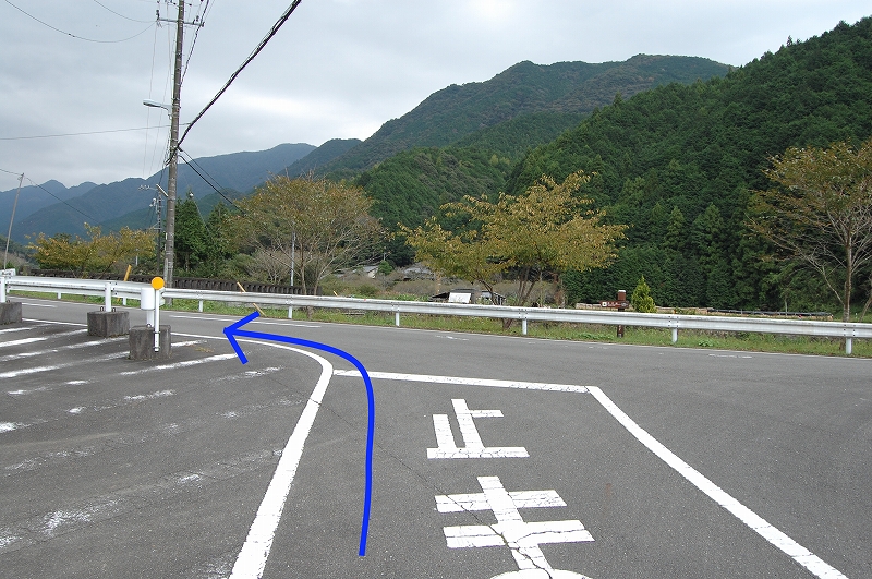 両河内特産品「こうち愛らんど」 | 石沢川を渡ったところで左折 (写真クリックで道標表示) |