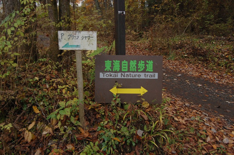 「東海自然歩道」と書かれたマルーン色の道標があった