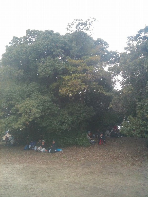 かなりの強風で、止まっていれないくらい。 木で風除けをする人も。 参加者でおしくら饅頭をしていた |